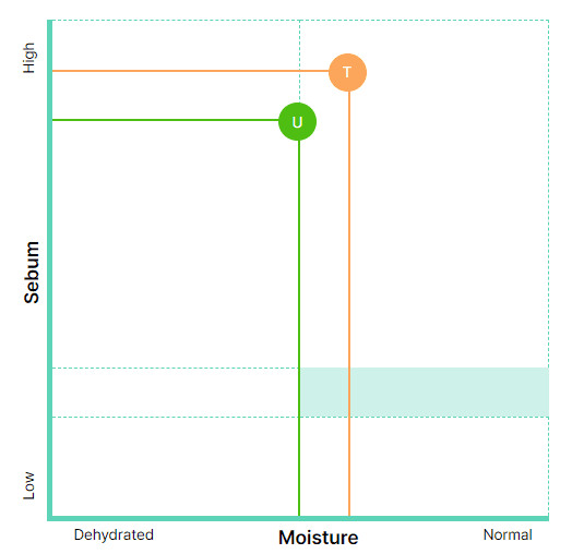 Based on the scale shown in Table 1, we grade skin condition into normal, dry, oily and combination. To get accurate estimation of skin condition, make sure you measure moisture and sebum for both t-zone and u-zone.
