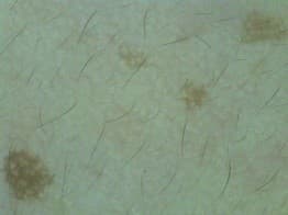 To assist diagnosis of spots, up to 5 images can be taken under the XPL light using the ChoiceTech Skin Analyzer. Our algorithm then evaluates the spots in each image and combines the individual results to provide a final spots grading. To be specific, in each image we study the color intensity of spots and classify them as light brown spots, brown spots and dark spots and visualize them as follows: